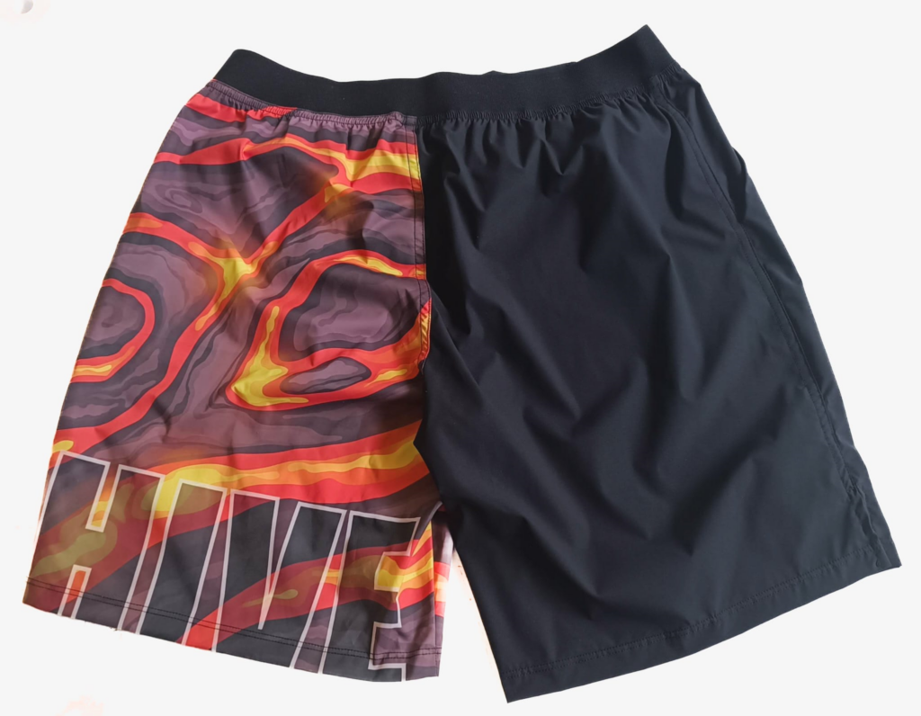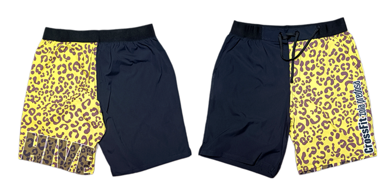 Con questa opzione la scelta è tra le grafiche HIVE disponibili, dove nella gamba “vuota” verrà stampato il logo del box. La quantità minima di acquisto è 1 singolo pantaloncino, se disponibile al momento in magazzino. Taglie miste. Tempi di produzione dall’accettazione: 4-5 gg
